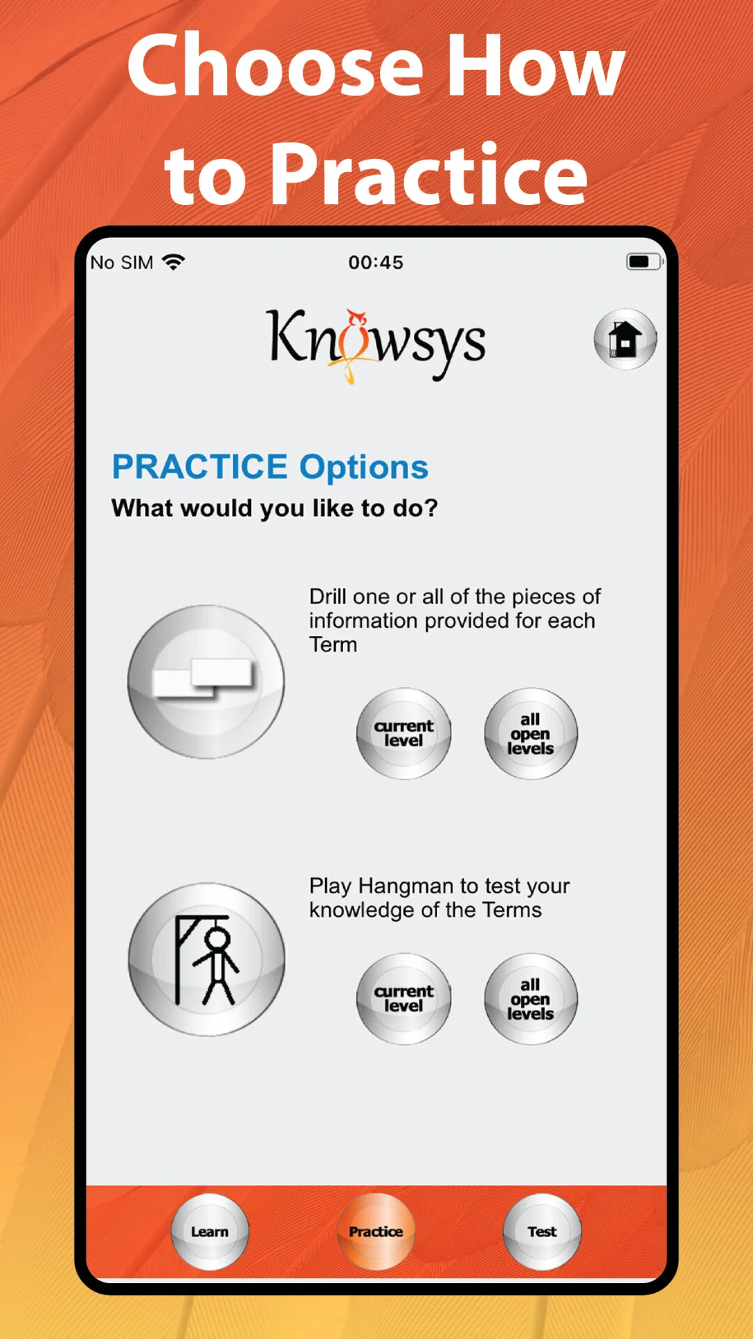 Knowsys Vocab Games ignite your vocab learning with far more than just flashcards – it’s flashcards PLUS hangman, drills, and a whole range of tests to help you master the words while having a blast! Benefit from spaced repetition (or spiraling) to engage words from all your open levels and attain mastery – which equates to long-term retention and the ability to use the words.