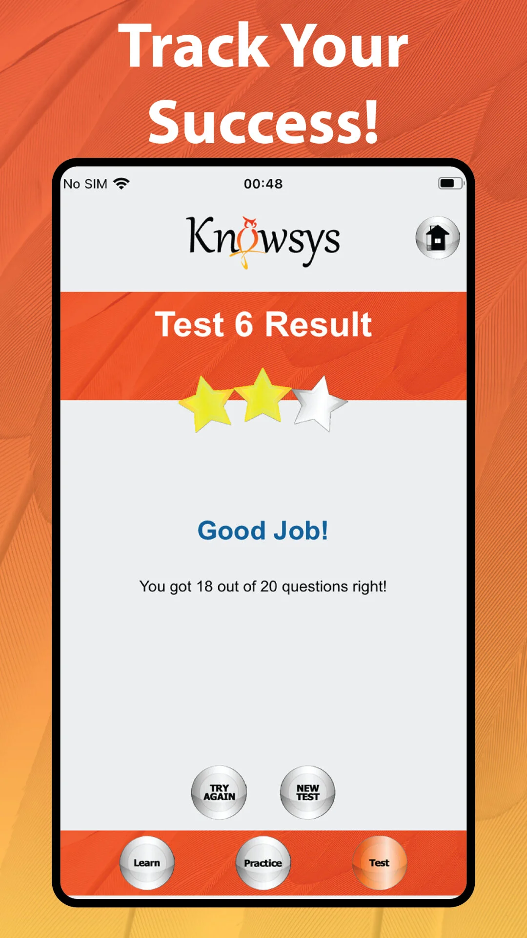 Test yourself to earn stars and level up